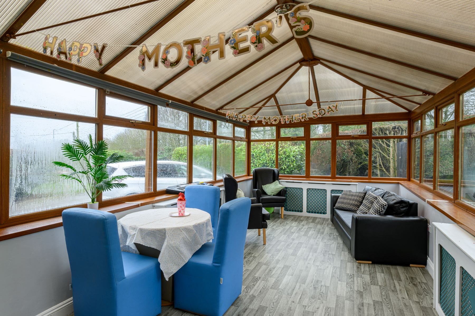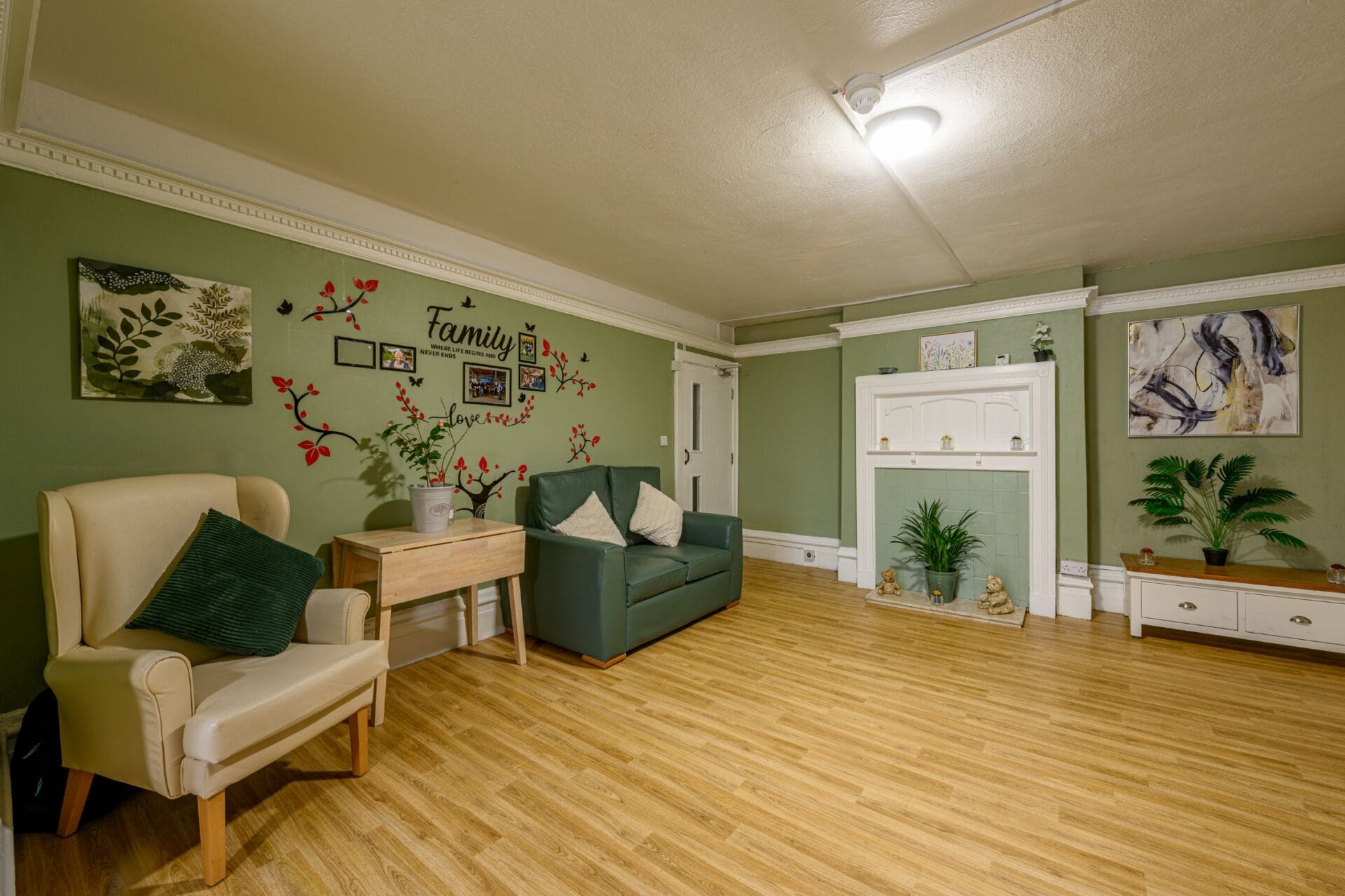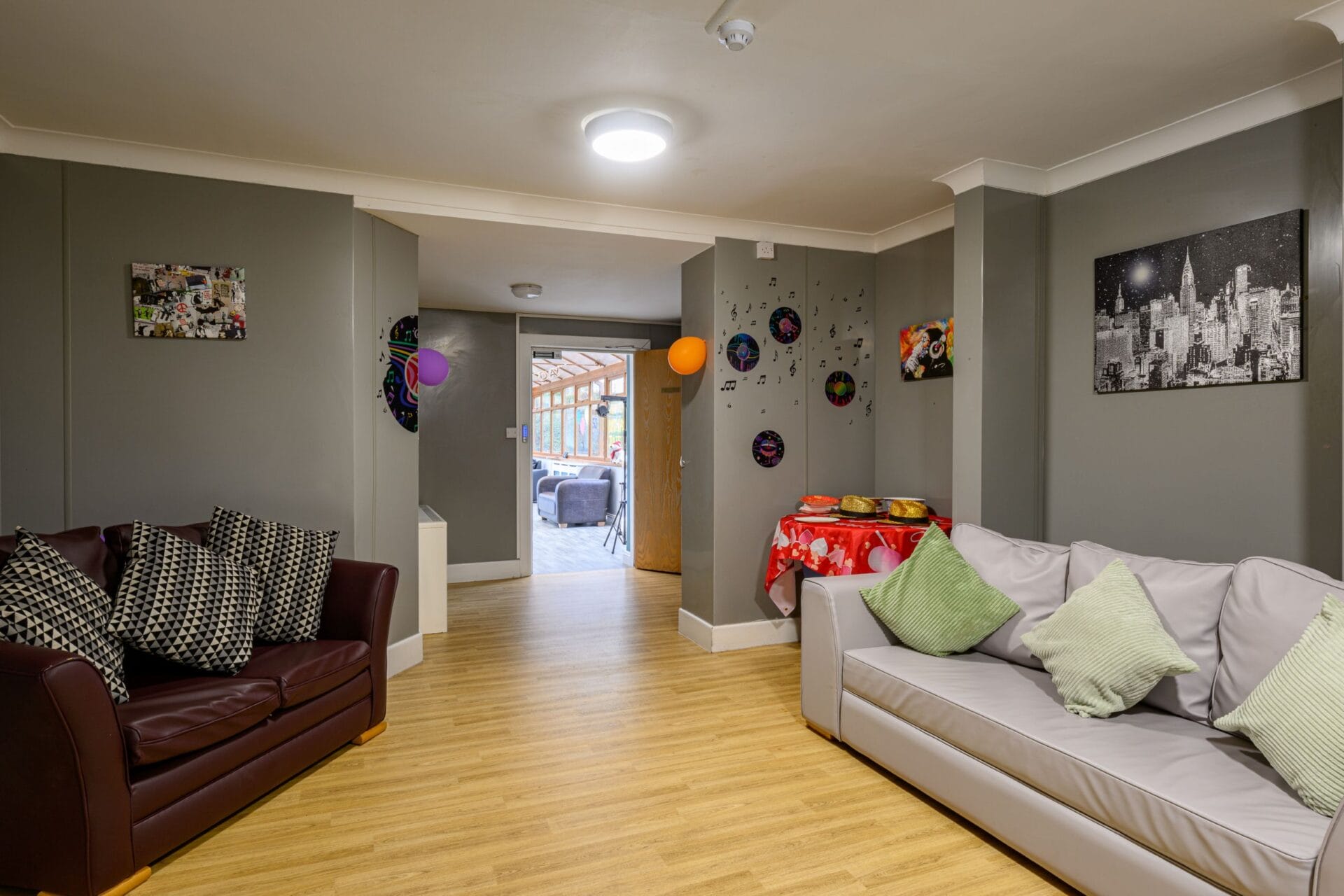 Additional amenities include a designated meeting room on the first floor, a large conservatory, and a spacious garden. One of the lounges can be converted into a private area for two of the rooms if needed, ensuring flexible and personalised living arrangements for all residents.