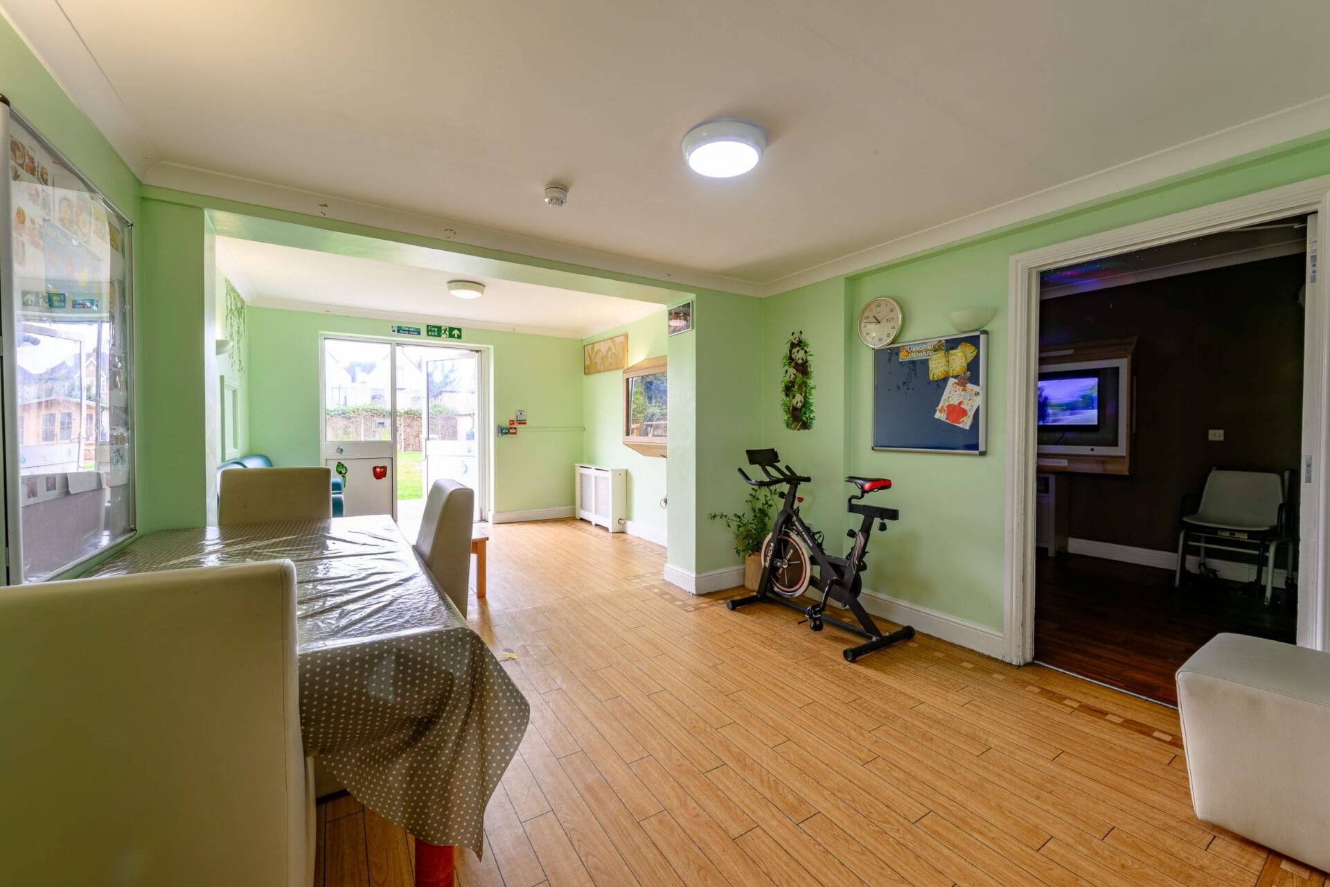 The garden is spacious and used for many social activities and events, especially during the summer. It also has a fully equipped sensory cabin, trampoline, and basketball hoop.