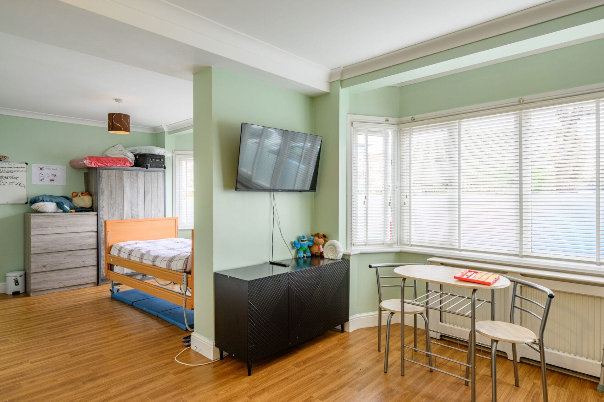 Rosebank Lodge is a large detached house in Merton. There is a range of bedrooms, self-contained bedsits and a large studio flat on the ground floor with their own facilities. The home is equipped with a ceiling hoist and has a lift for accessibility needs. There are multiple communal areas so people can socialise with others if they wish, including a large U-shaped lounge, dining room, and visitors’ room. Individuals have access to the communal kitchen whilst those in the self-contained bedsits and flats have support to access their own kitchens.