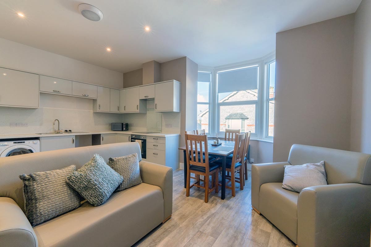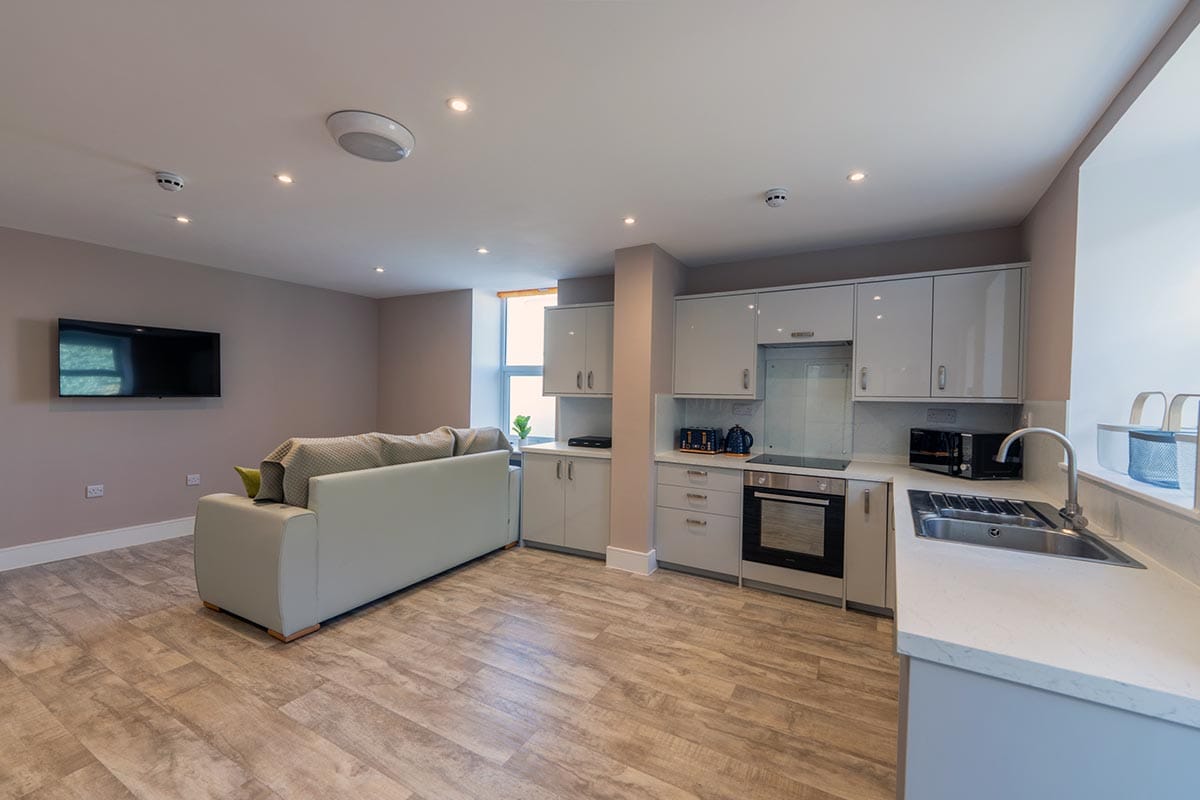 Each apartment is modern, spacious, and private—featuring its own en-suite wet room and living space. One apartment also includes a kitchenette for those ready to build more independent living skills. The home also offers a communal lounge, kitchen and dining area where people can socialise, share meals, or take part in group activities.